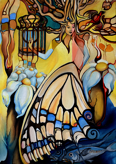 There is always a tendency for education or “bringing the light of knowledge”. This cycle is that kind of Creation. Working as a pedagogue in a diminishing values society I have collected a certain amount of wisdom and I feel like I need to share with others who are interested in a matter. In a poem like texts that are accompanying every painting I am speaking about the metamorphosis of every student who have become a butterfly, after years of life in ignorance, here on Earth. It is all about leaving journey of big dreams and having profound changes.