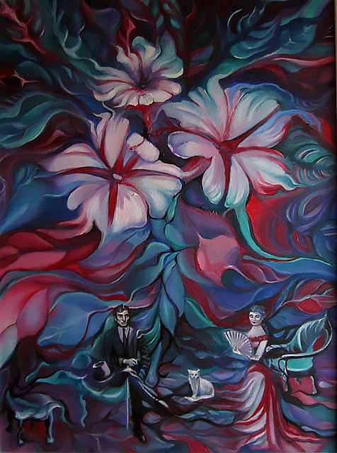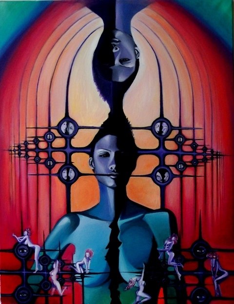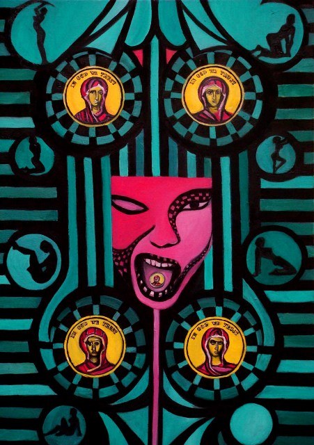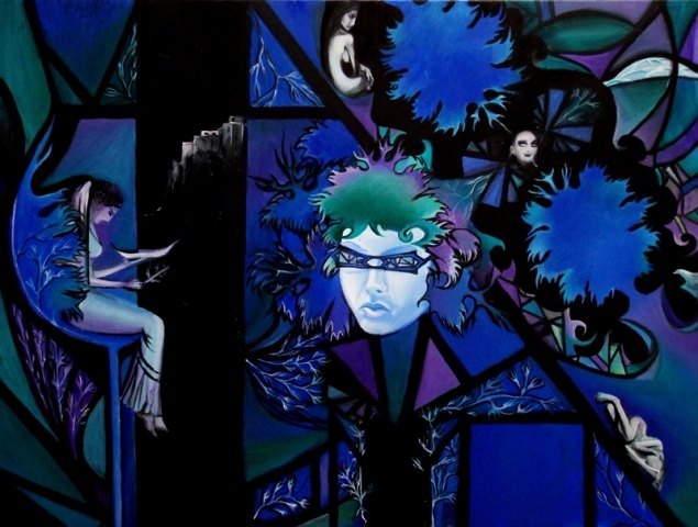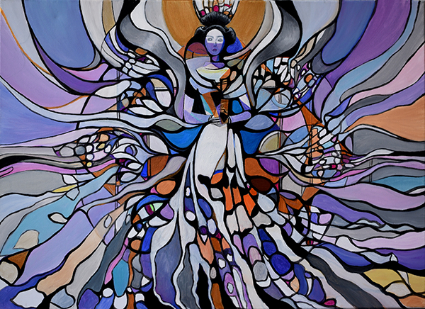 Cycle “The Initiation through the Animas” includes two media, painting and poetry. Motives are mainly portraits and nudes interwoven into the organic and inorganic ornaments with visible impact of postmodern aesthetic. Although this was a serious topic of spiritual growth and overcoming oneself I am aware that this is the process that lasts a lifetime and that identity therefore is not and cannot be absolute.