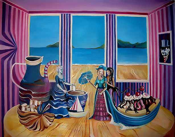 A certain quality of permanence in every moment that points to the constant omnipresence of something that is behind the game they play. Profoundly witty arrangements on the stage like scenery that remind us of a doll’s house, are sometimes expanded into ironic and critical environments rounded with brash and sometimes candy like colors. This cycle is so called playful art and is the one that is still work in progress with new charming and vibrant illustrations to come. Christmas Easter Celebration.
