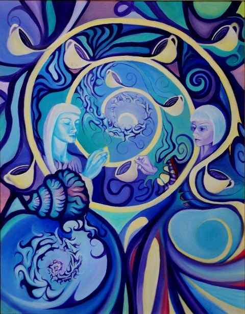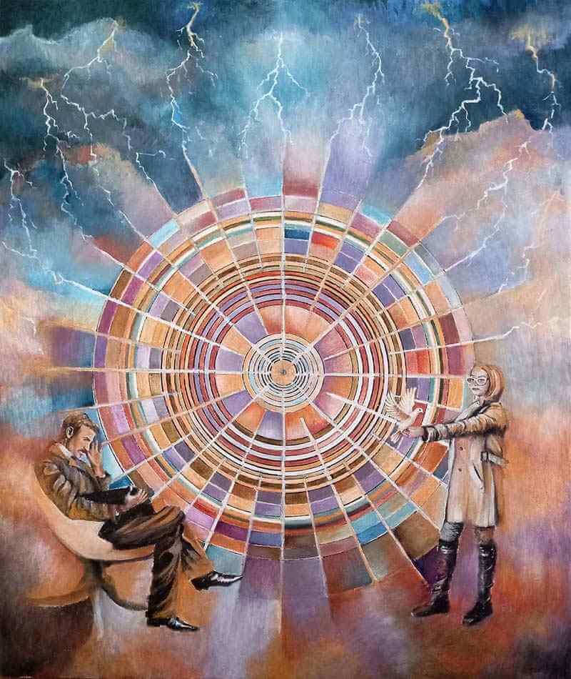 n this cycle I am introducing 12 students of a profound archetypical teacher depicted on 13 canvases. The colour becomes the structure, and principle, the basic building block. My art is very rarely l’art pout l’art.