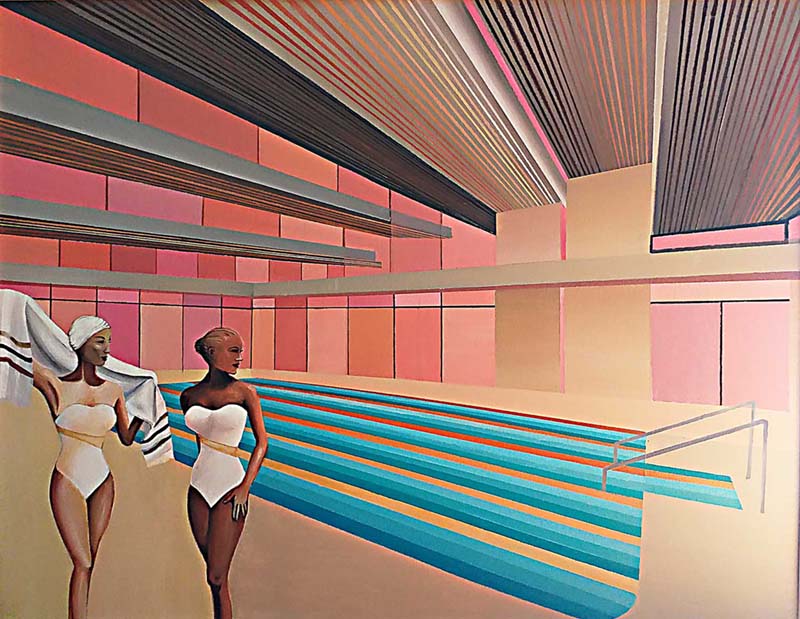 The cycle of Dames are genre scenes depicting a doll like women in somewhat relaxed and still, statued poses, even when they are in motion. This cycle is an attempt of celebrating life as it is, joie de vivre, but that is only at frist glance. Each of these paintings contains at least a minute warning of discomfort and they bring time to stand still.
